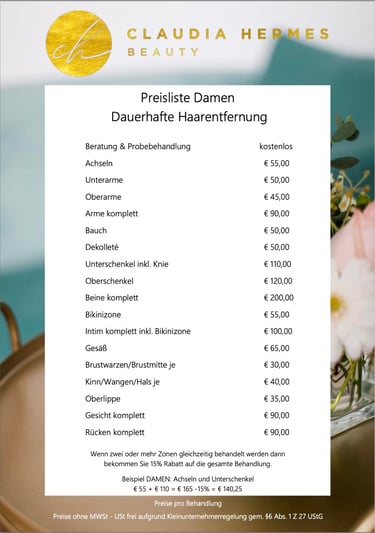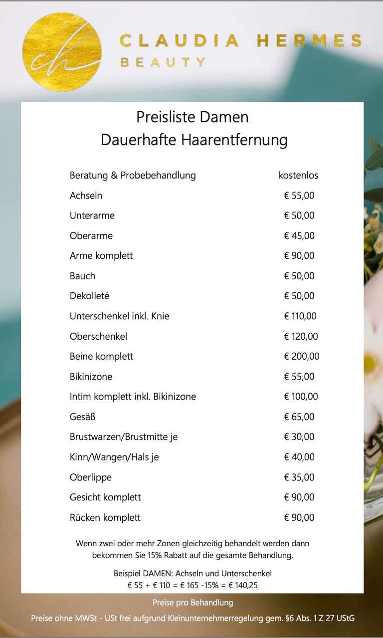 Willkommen bei Claudia Hermes Beauty, Ihrer Expertin für dauerhafte Haarentfernung mit modernster Diodenlaser-Technologie in Linz Land. Vertrauen Sie auf meine Erfahrung und Professionalität.
